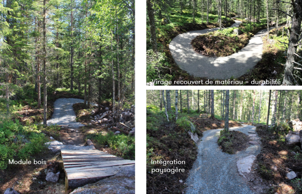 • Un espace d’entraînement physique et d’échauffement : équipé de modules en bois et d’aménagements naturels (pierriers), conçus pour s’intégrer harmonieusement dans le paysage.